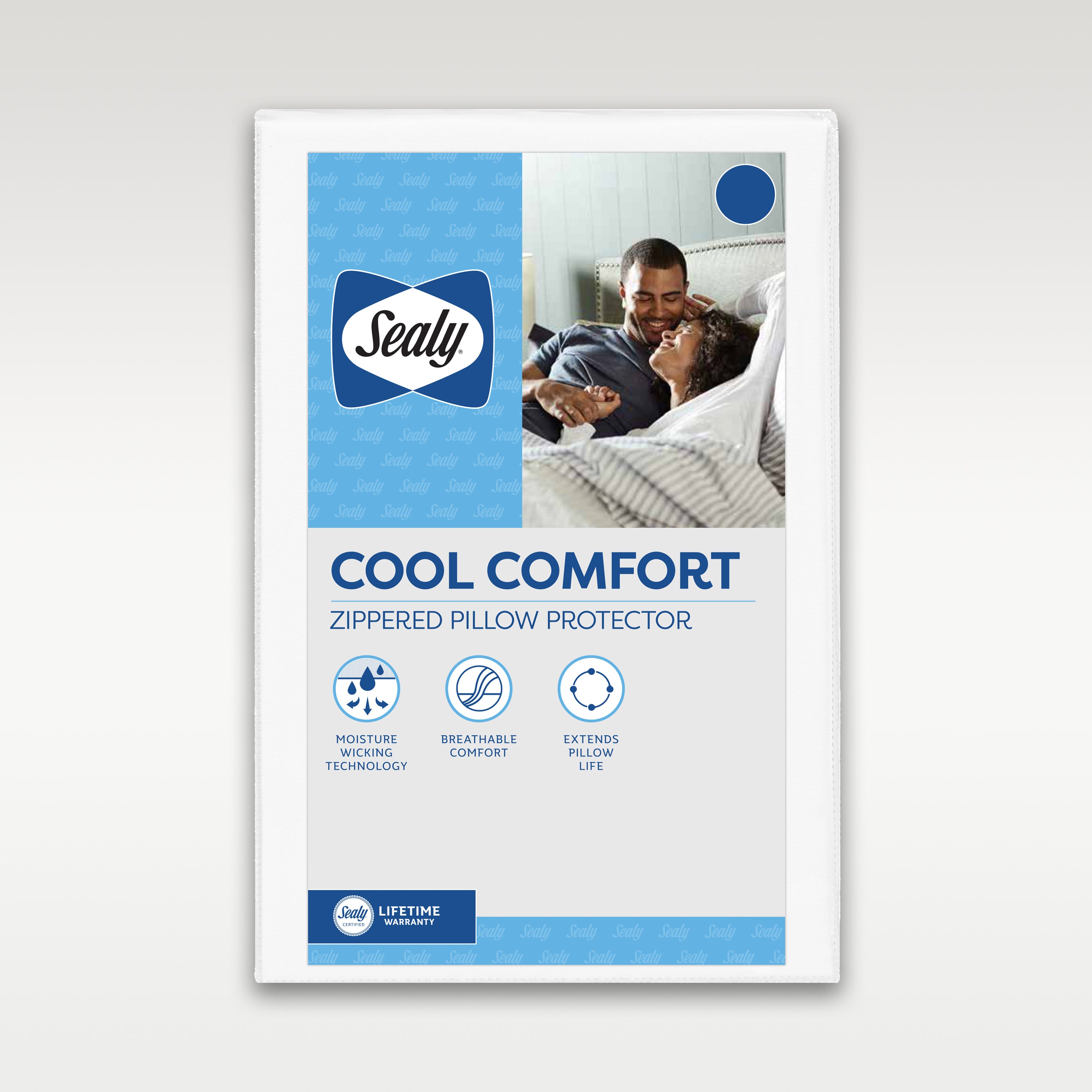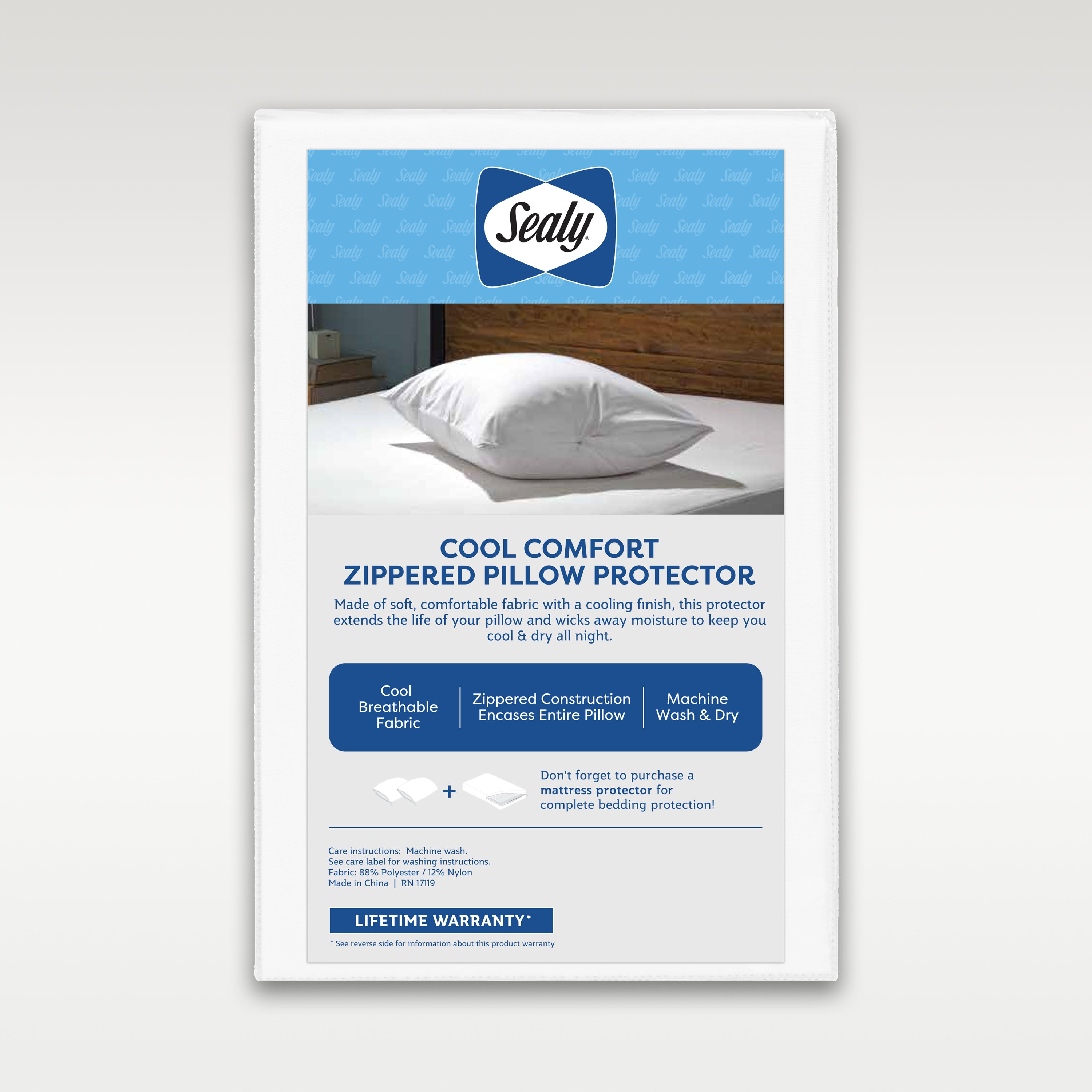 The Sealy Cool Comfort Zippered Pillow Protector is made with a soft, comfortable fabric with a cooling finish. This breathable pillow protector wicks away moisture to keep you cool and dry all night. It extends the life of your pillow by adding a protective layer between your pillowcase and pillow, keeping it clean and fresh.