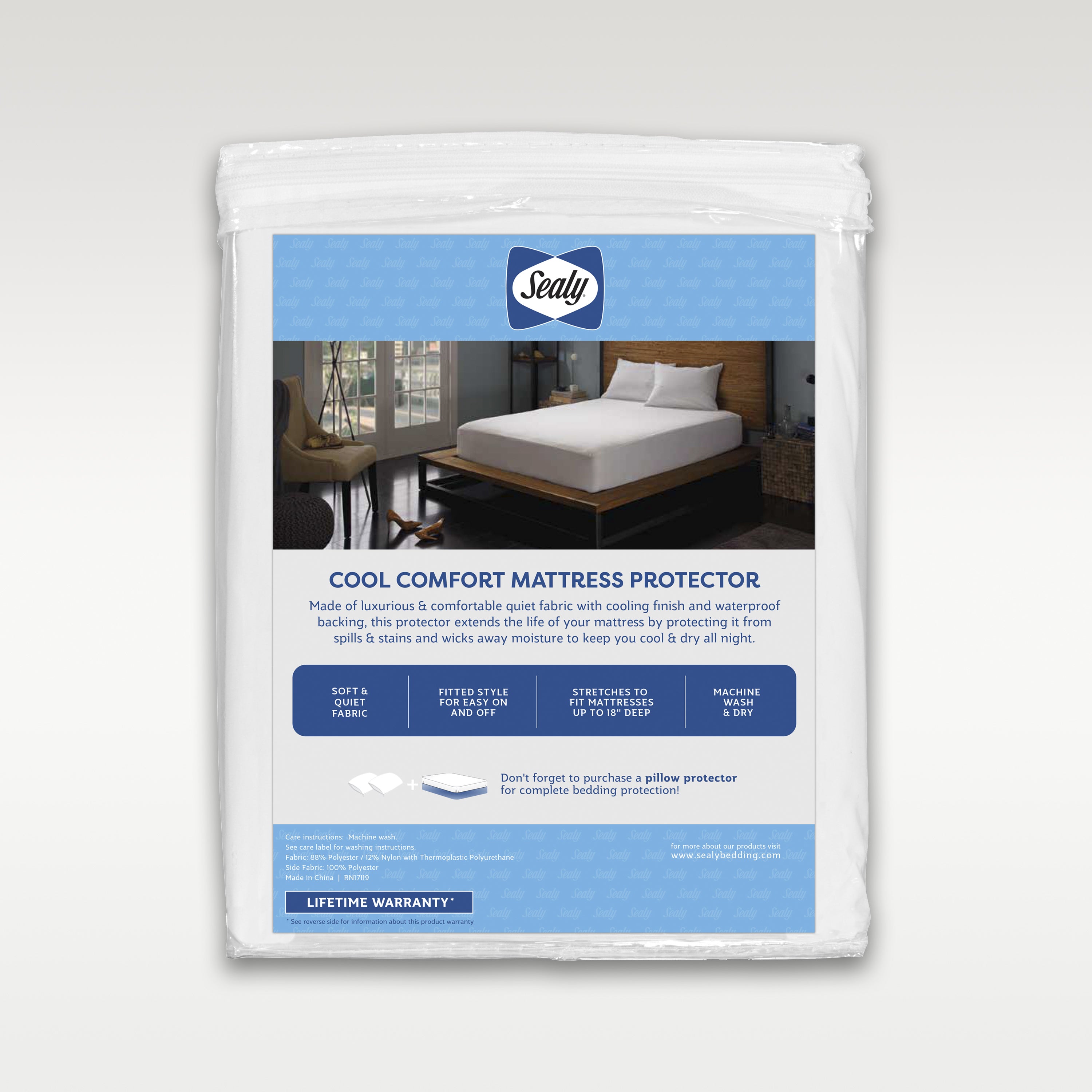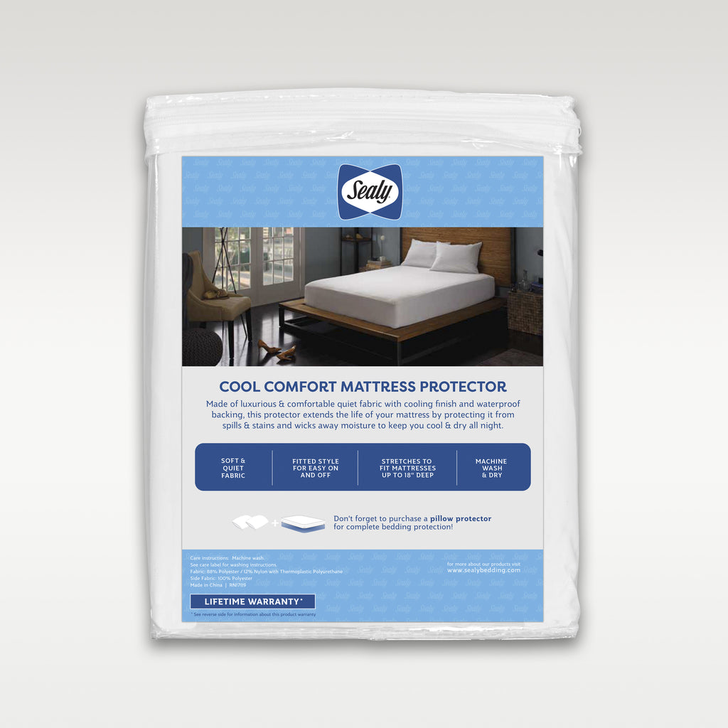 The Sealy Cool Comfort Fitted Mattress Protector is made with a soft, comfortable fabric with a cooling finish. This breathable mattress protector wicks away moisture to keep you cool and dry all night. Sealy mattress protectors extend the life of your mattress by adding a protective layer between you and your mattress, keeping it clean and fresh.